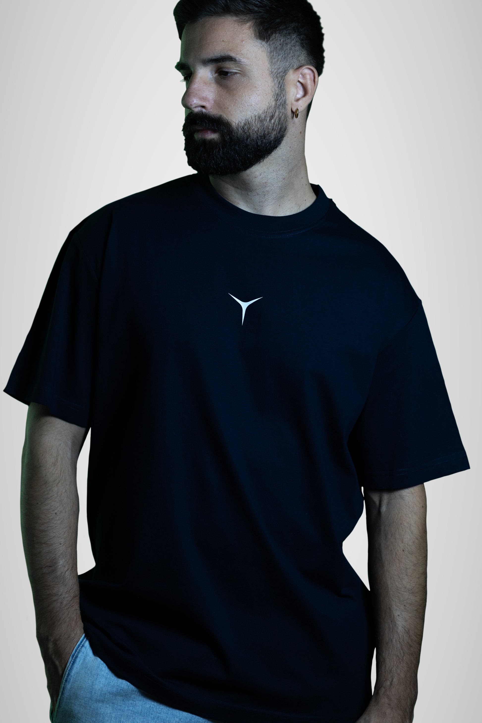 T-shirt oversize a maniche corte. Scollo rotondo con bordo a costine 2x1 e cuciture overlock abbinate. Cuciture laterali. Ampia impuntura a doppio ago su manica e orlo.