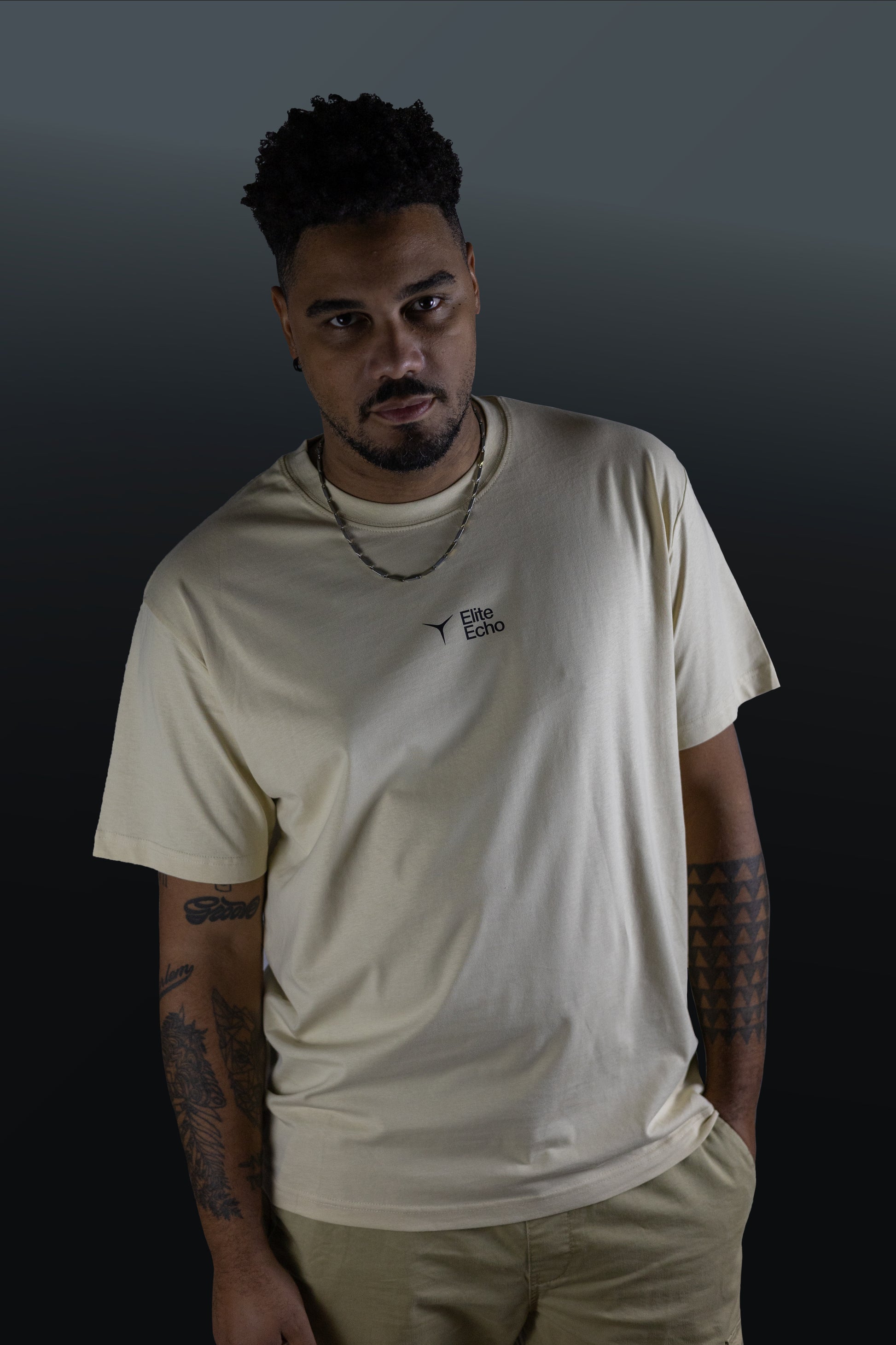 T-shirt oversize a maniche corte. Scollo rotondo con bordo a costine 2x1 e cuciture overlock abbinate. Cuciture laterali. Ampia impuntura a doppio ago su manica e orlo.
